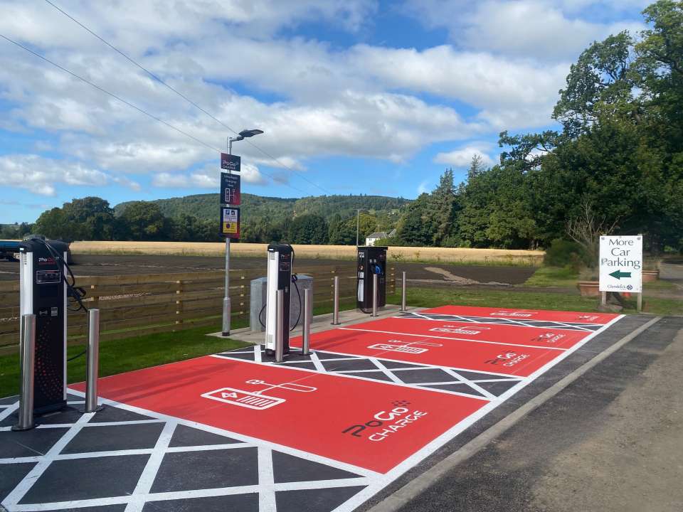 Yes we have rapid and medium EV chargers in the overflow carpark to the west of the garden centre. Pass the little cottage in the carpark and turn right.